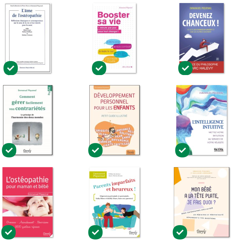 J’ai commencé à publier vers 2011 et je n’ai jamais arrêté depuis ! Les thèmes de mes livres sont principalement la psychologie, le développement personnel et l’ostéopathie, que ce soit pour les adultes ou les enfants (voir l’interview vidéo). Le 1er livre était une co-traduction en ostéopathie.